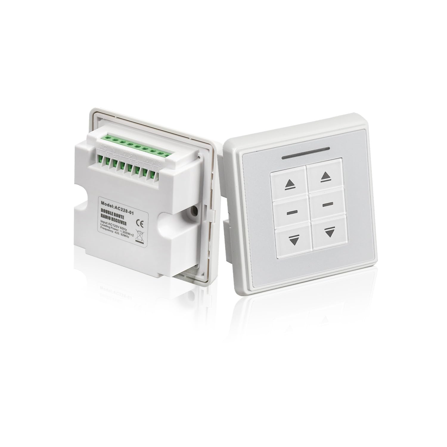 AC228-01 24V Motor Switch Controller - Crystal style dual-route radio receiver & wall switch for roller blinds/shades